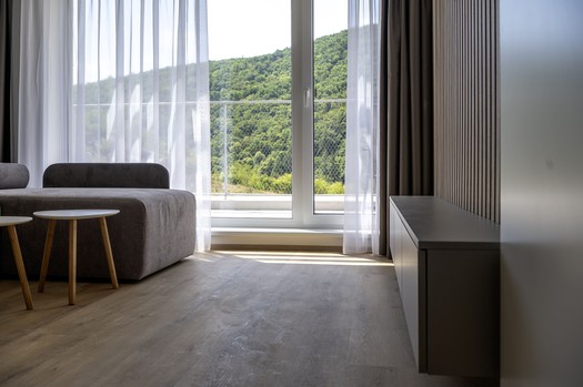 V rámci architektonického řešení projektu DIORIT se kladl mimořádný důraz také na estetiku oken. Interiér pracuje s čistou bílou, která podtrhuje světlo a vzdušnost bytů, zatímco exteriér získává elegantní charakter díky odstínu Oxide 5 použiu u většiny okenních prvků. Sestavy se širokými HS portály ve štítových stěnách pak dostaly výrazný tón Blau 2600, jenž zdůrazňuje jejich jedinečné měřítko.