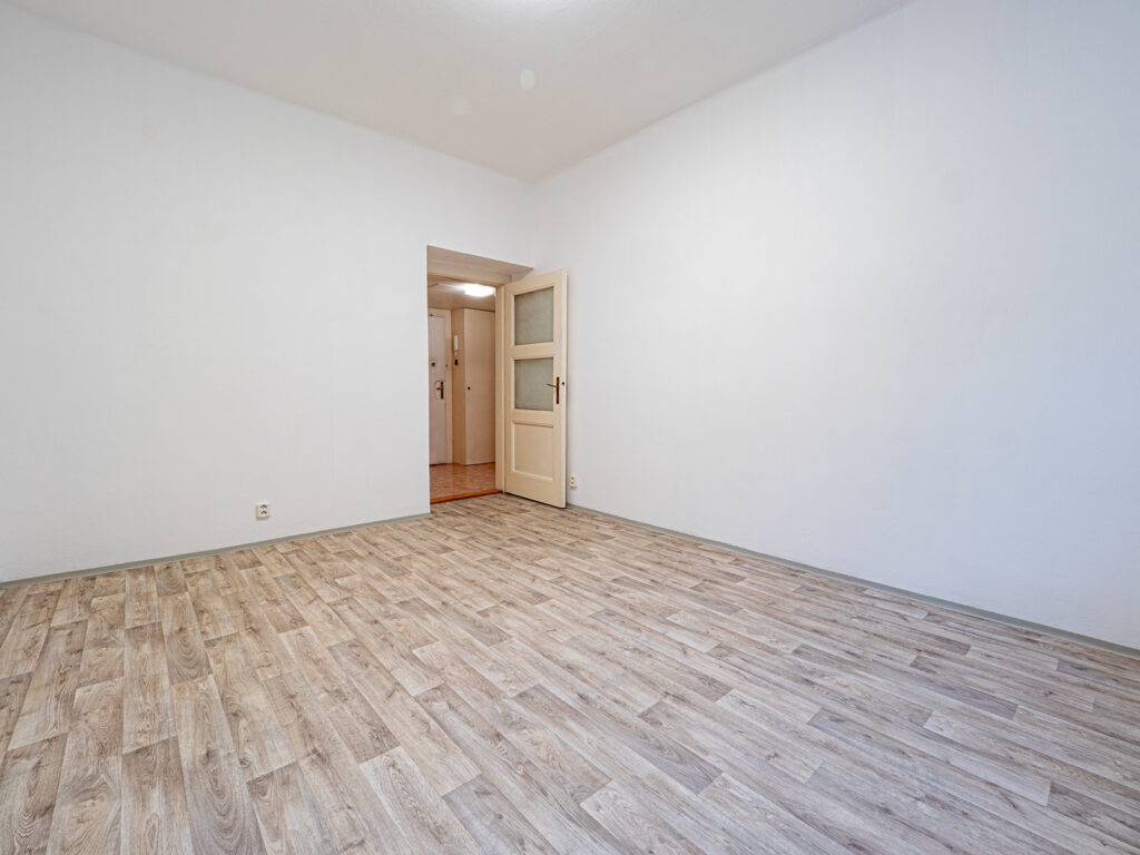 Pronájem nezařízeného bytu s dispozicí 1+1 s výměrou 40,4 m², který je ve 2.NP činžovního domu s výtahem v ul. Koulova, Praha 6 – Dejvice. Byt sestává z kuchyně (16,4 m²), kuchyň je vybavena varnou deskou, sporákem, myčkou a lednicí. Dále je v bytě předsíň (4,5 m²), koupelna s vanou a pračkou (2,1 m²), separátní WC (1 m²) a komora (1 m²) Dále je v bytě pokoj (15,1 m²). Další úložný prostor je nad sníženým stropem v předsíni. Vytápění je lokální plynové (WAW) a ohřev vody zajišťuje vlastní bojler. Součástí pronájmu je také velmi prostorný sklep (viz. foto).