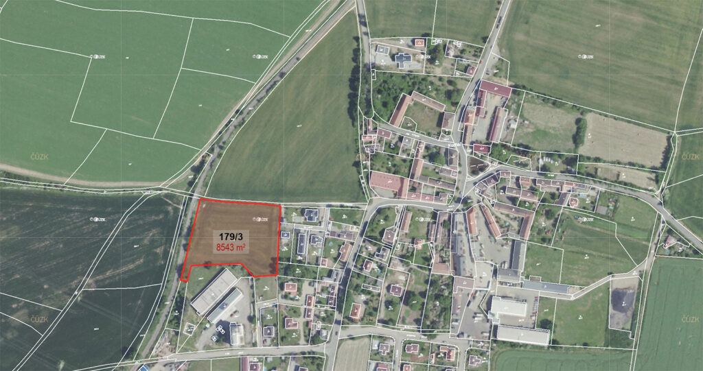 Grafická část ÚP – pozemek je umístěn převážně v zastavitelném území obce v ploše Smíšená obytná území, ze západní části je vymezena v ÚP veřejná a parková zeleň, v ploše je potřebné vyřešit návrh komunikací