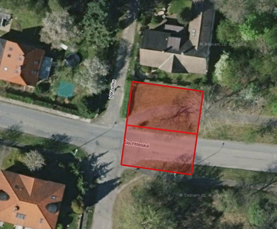 Pozemky jsou situovány na křižovatce ul. V Koutku a ul. Šlechtitelská. Na pozemcích se v současné chvíli nachází veřejný chodník a veřejná frekventovaná silnice. Pozemek je obdélníkový v zastavěné části obce se stranami zhruba 21m x 24m x 20m x 24m.