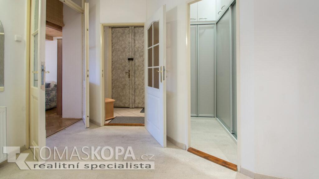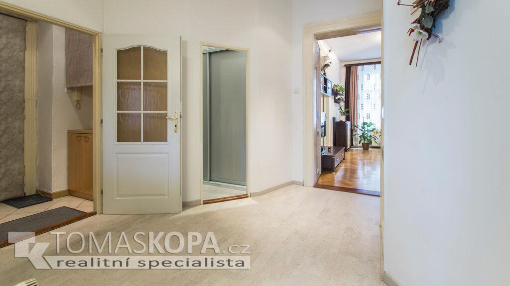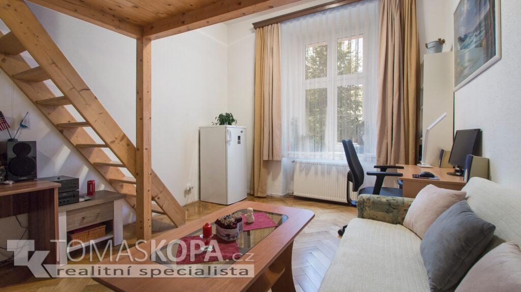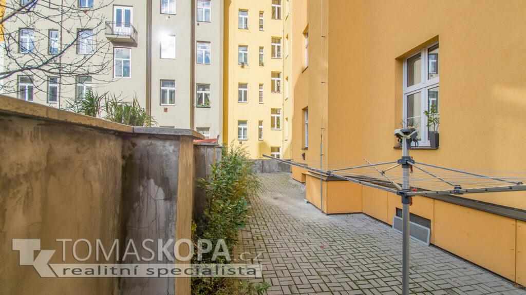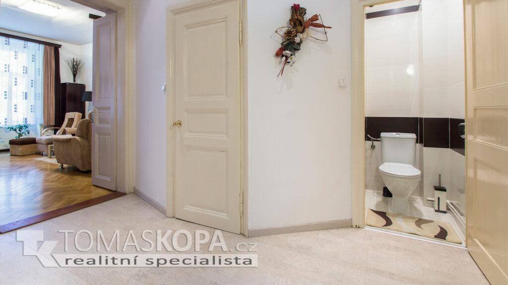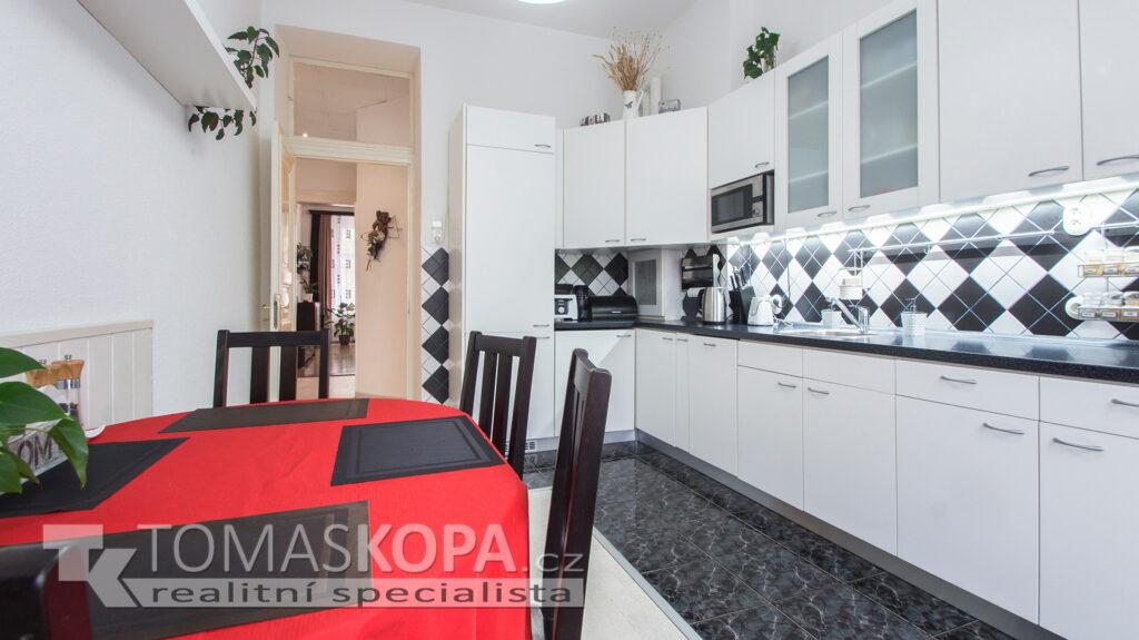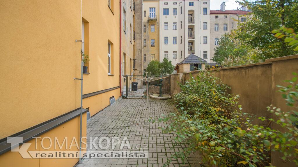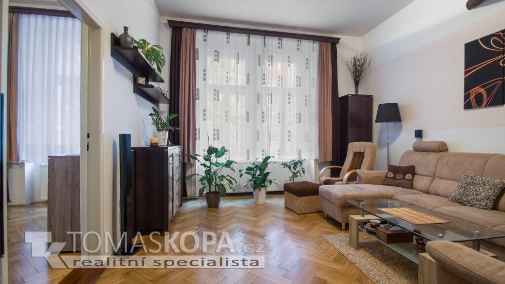 Prodej bytu s dispozicí 3+1 o celkové výměře 96 m², který je ve zvýšeném 1. NP secesního cihlového domu s výtahem v pražské městské části Vinohrady. Byt sestává z prostorné předsíně, haly (16,95 m²) ze které máme vstup do samostatné šatny s vestavěnými skříněmi, koupelny s vanou i sprchovým koutem (3,11 m²), samostatné WC, obývacím pokojem (20,96 m²), kuchyně (14,42 m²) ve které je moderní kuchyňská linka se spotřebiči a dvěma pokoji (16,74 m² a 17,16 m²). V menším z těchto pokojů je vybudováno dřevěné patro na spaní (cca 6 m²). Stropy jsou v tomto bytě vysoké 322 cm. K bytu náleží sklep o výměře 5,24 m². Dům prošel kompletní rekonstrukcí. V místě je veškerá občanská vybavenost, v blízkosti zastávka tramvaje s rychlou dostupností do centra. V blízkosti bytu se nachází nespočet kaváren a restaurací, náměstí Míru s kostelem sv. Ludmily, Divadlo na Vinohradech, městské parky a sady s možnosti procházek a odpočinků. Parkování je možno v ulici.