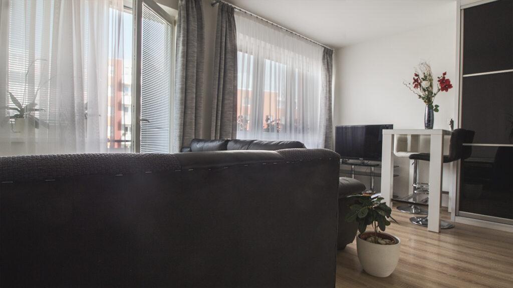 Prodej bytu 1+kk v osobním vlastnictví o výměře 31 m² + balkon 8,4 m² s vlastním parkovacím stáním před domem. Tento krásný a moderně vybavený byt se nachází ve 3.NP novostavby z r. 2015 (Panorama Kyje VI.). Byt sestává z předsíně s vestavěnou skříní, koupelny se sprchovým koutem a WC, obývacího pokoje s kuchyňským koutem, byt se prodává jako vybavený – kuchyňská linka Gorenje v moderní černé barvě, trouby, varné desky zn. Gorenje, mikrovlnné trouby zn. Gorenje, v obývacím pokoji rovněž najdeme velkou úložnou vestavnou skříň, nábytek a TV zn. Samsung. V obývacím pokoji je položena kvalitní laminátová podlaha. Z pokoje je vstup na balkon, který je západním směrem, který poskytne výhled do zeleně. Dům z roku 2015 je velmi dobře udržován a má bezbariérový přístup. K dispozici je společná kočárkárna. Dům je vybaven bezpečnostním kamerovým systémem. Výborná dostupnost na metro Rajská zahrada (5 minut BUS), zastávka 50 metrů od domu, v okolí veškerá občanská vybavenost. Autem dobré napojení na R10 (Mladá Boleslav, Liberec).