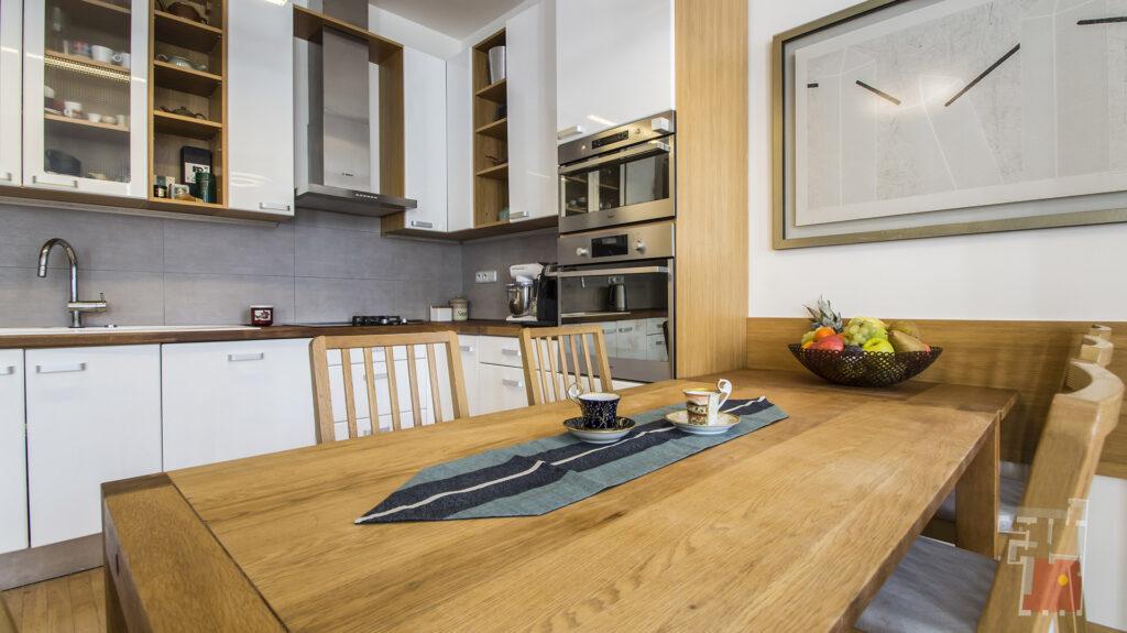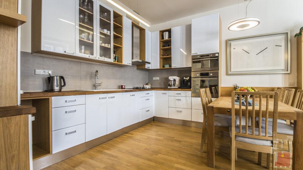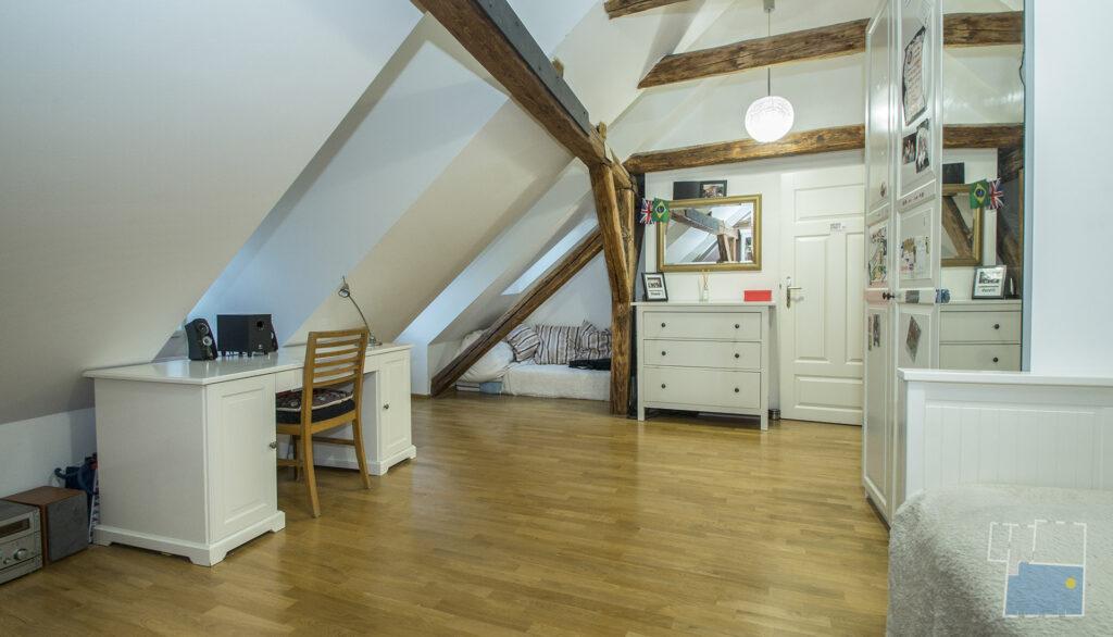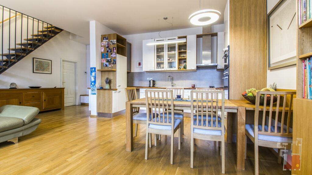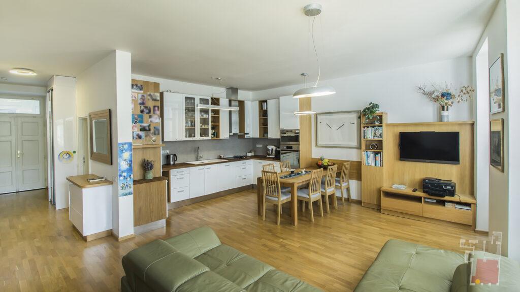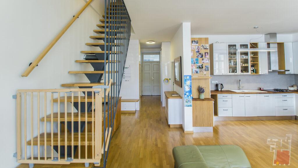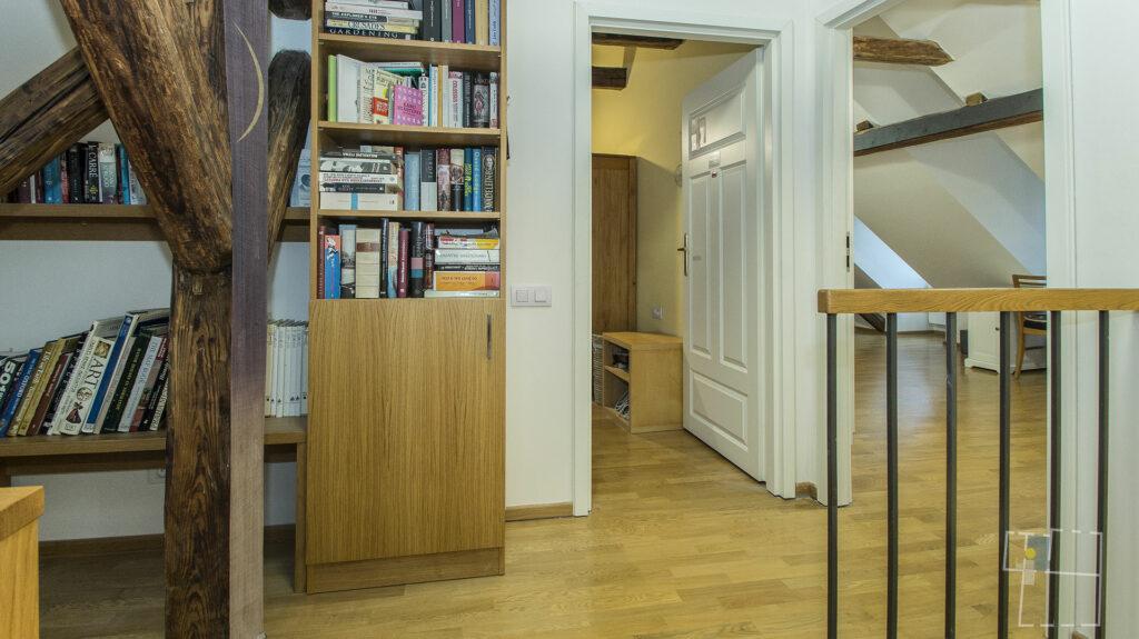 Prodej krásného mezonetového bytu s dispozicí 4+kk o výměře 137,2 m², který se nachází ve 3. a 4. nadzemním podlaží historického domu s citlivě renovovanými původními prvky (kamenné schodiště domu, kamenné a kovové konzoly podpírající pavlače). Dům, stejně jako byt, prošel před šesti lety kompletní rekonstrukcí, součástí domu je prostorný výtah. V bytě jsou zachována špaletová okna, veškeré podlahy jsou z dubových parket, provedení dveří a koupelen je stylově jednotné.