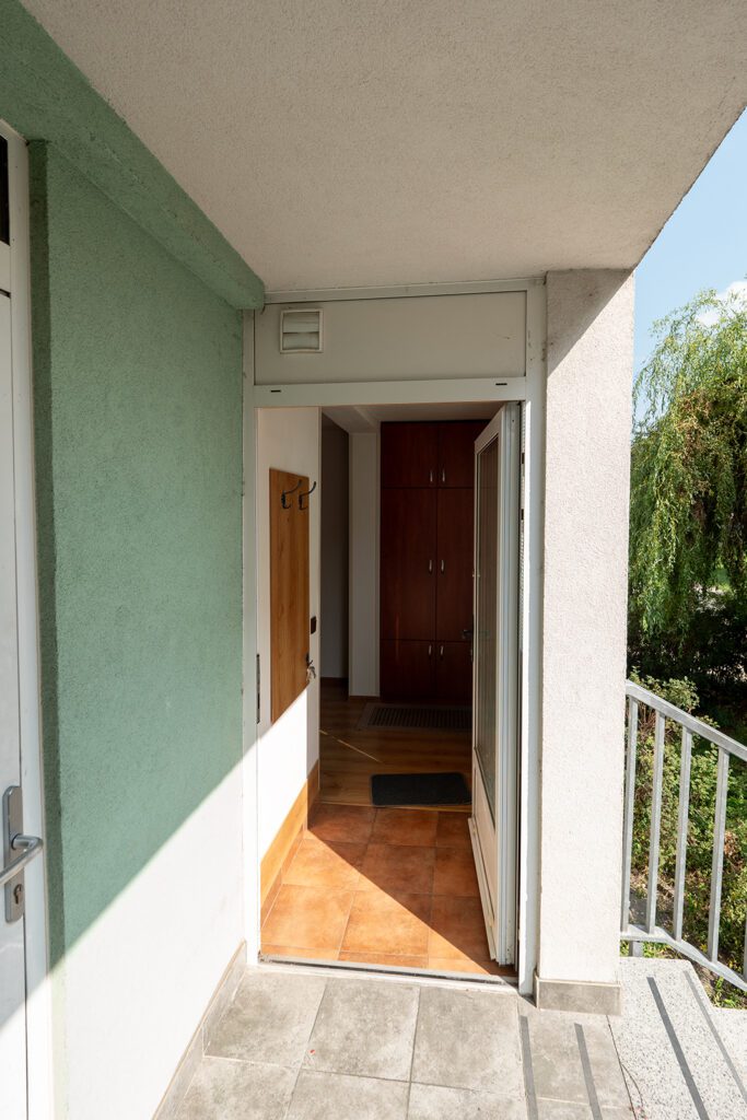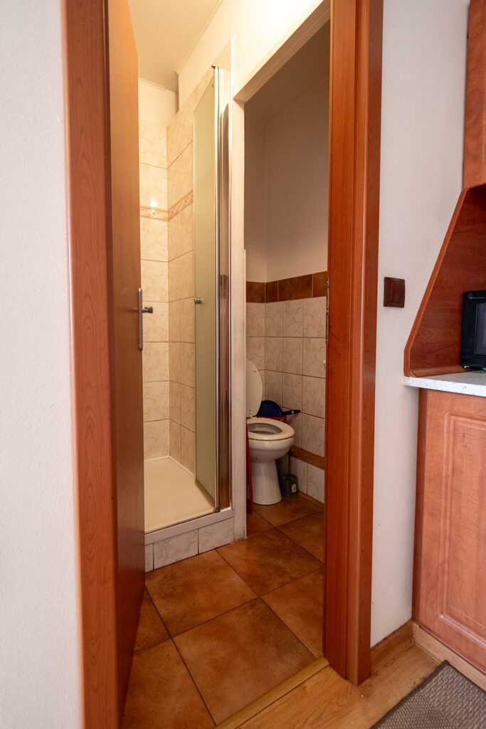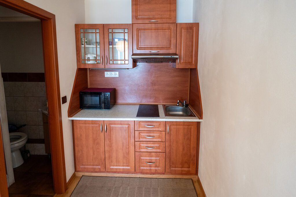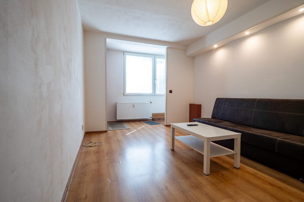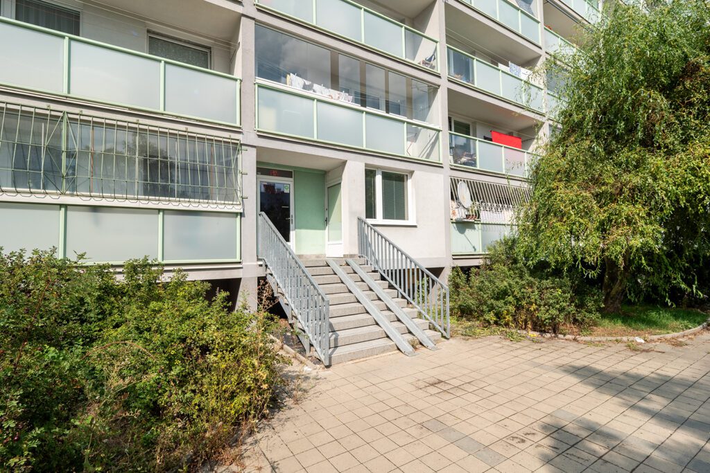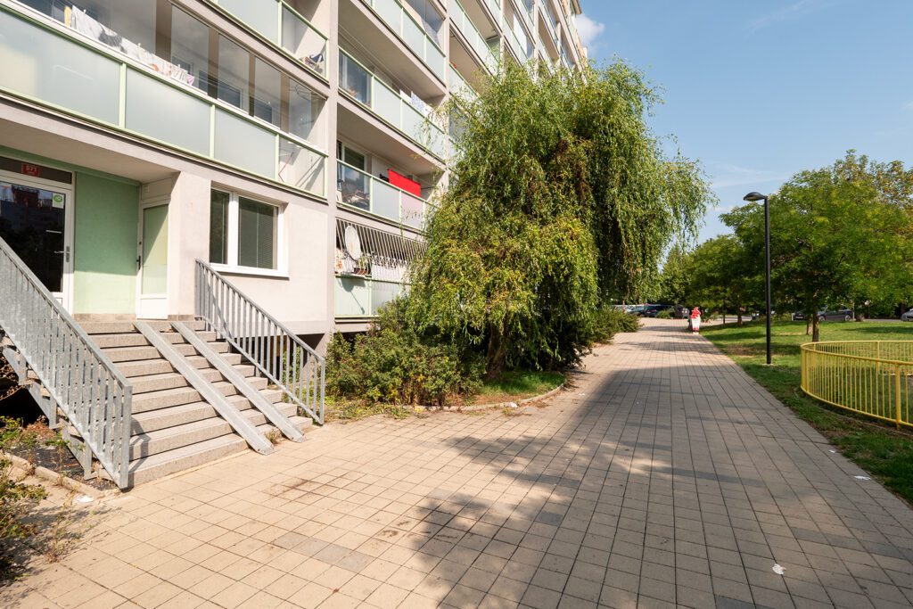 Pronájem nezařízeného bytu s dispozicí 1+kk o celkové výměře 22 m², který je v 1. NP revitalizovaného panelového domu v pražské městské části Praha 9 – Letňany. Byt sestává z obývacího pokoje s kuchyňským koutem (19,6 m²), který je vybavena malou pračkou, el. sporákem (2 plotýnky bez trouby) a mikrovlnnou troubou, dále koupelny se sprchovým koutem (2,2 m²).