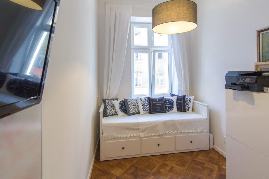 Prodej krásného zrekonstruovaného a kompletně zařízeného bytu s dispozicí 3+kk a výměrou 60,8 m2, který se nachází ve 2. nadzemním podlaží cihlového činžovního domu s výtahem. Byt sestává z předsíně, technické místnosti, haly, dvou pokojů a rozlehlého obývacího pokoje s kuchyňským koutem s moderními spotřebiči. Z obývacího pokoje, který směřuje na jihozápad se dostaneme na terasu s výměrou 26 m2 ze které je vstup na vlastní udržovanou zahradu ve vnitrobloku domu o výměře 80 m2. Vytápění a ohřev vody zajišťuje plynový kotel (12 kW) s bojlerem 160l a dále elektrický (realistický) krb (3.5 kW) v obývacím pokoji. Okna bytu jsou plastová. Parkovat lze bezproblémově na ulici před domem (bez modrých zón). Veškerá občanská vybavenost je v těsné blízkosti domu: škola, školka, obchody, restaurace, pošta, banky, autobusové a tramvajové zastávky. Vstup do stanice metra “B” Palmovka je vzdálena pouze 100 metrů od domu. Jedná se o byt v osobním vlastnictví.