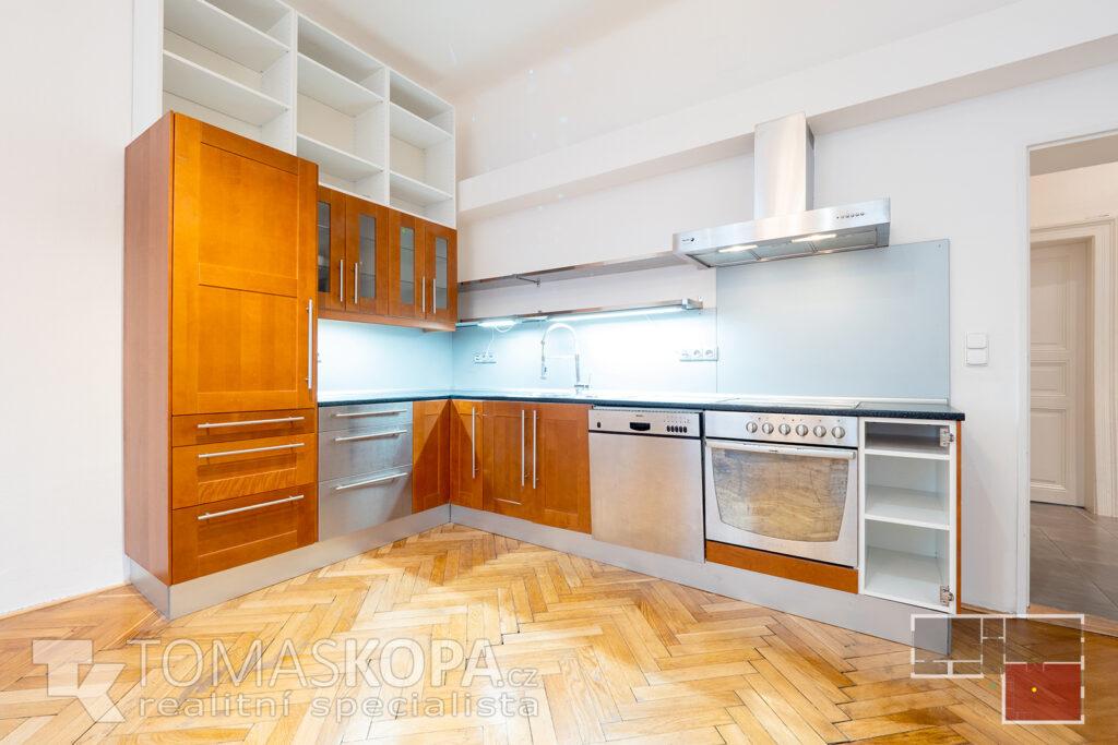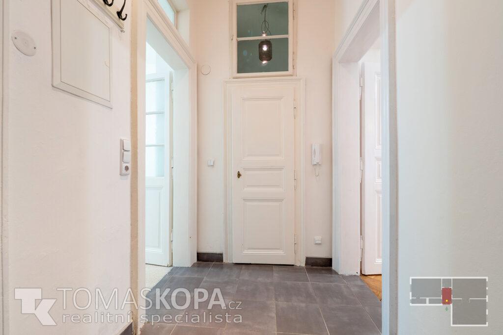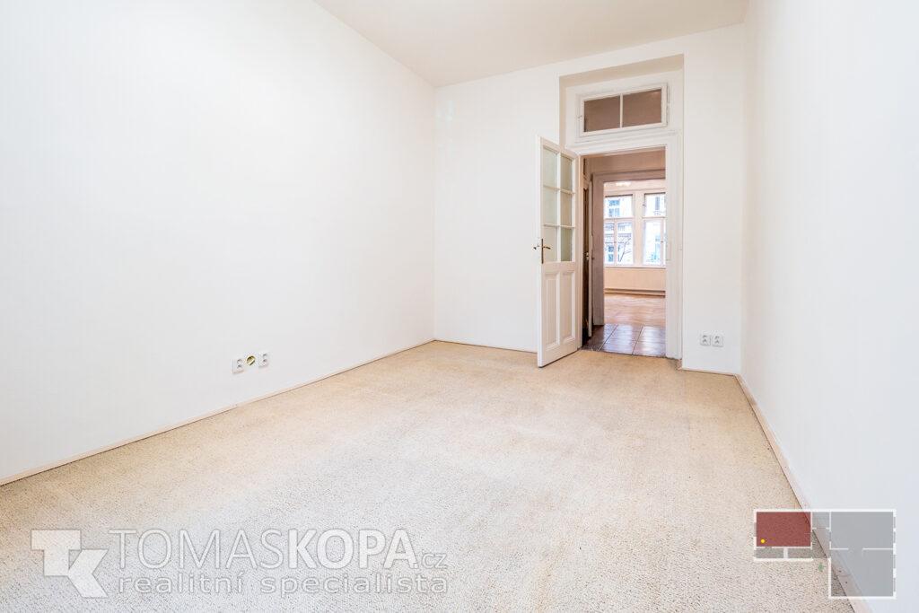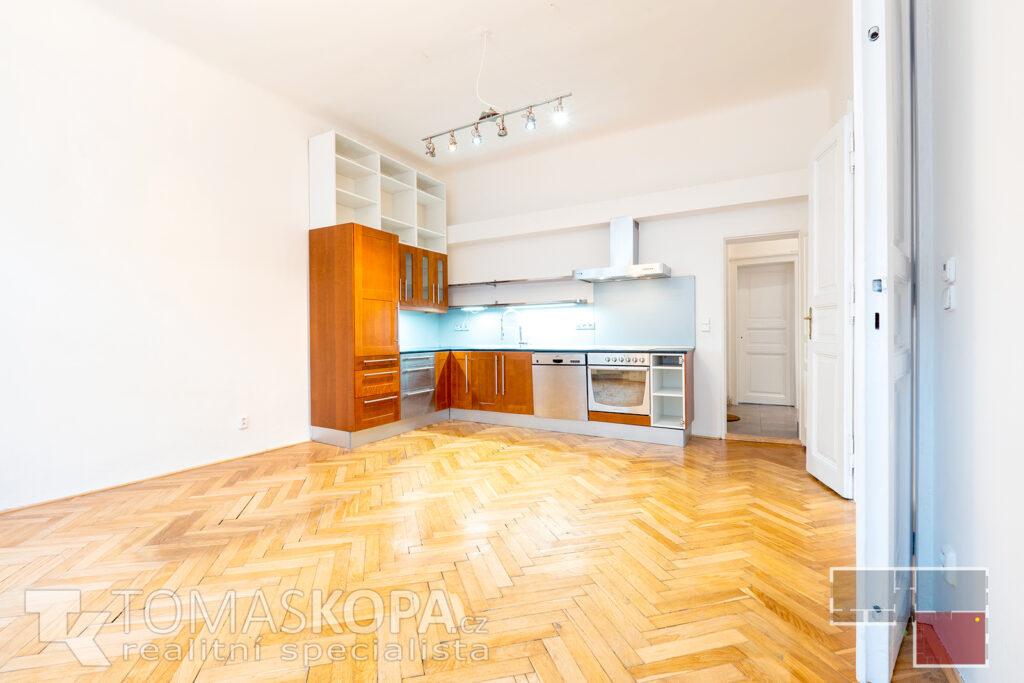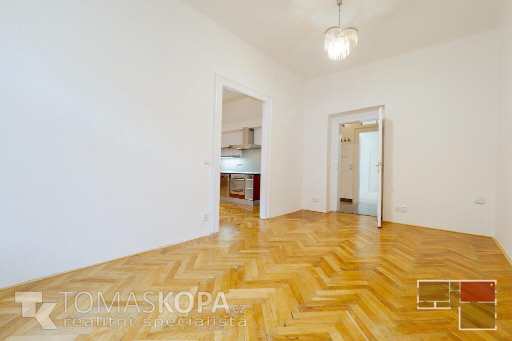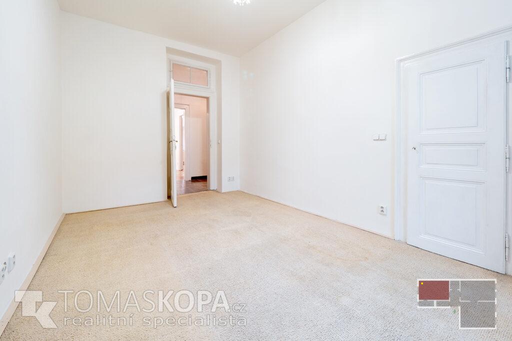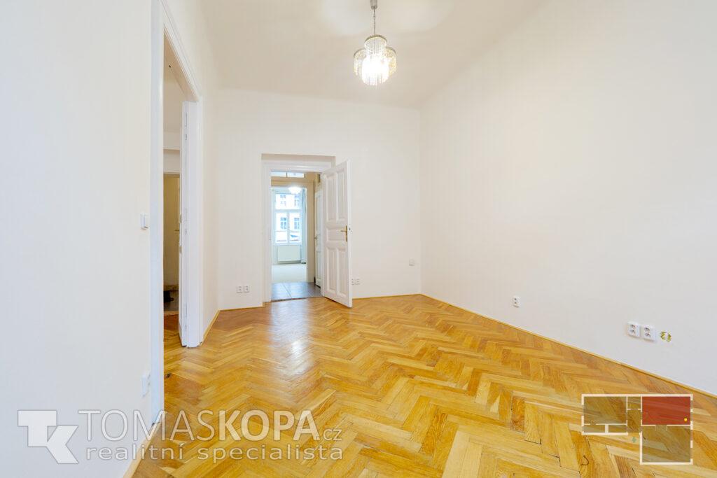 Prodej bytu v osobním vlastnictví s dispozicí 3+kk o výměře 73 m2, který se nachází ve 2. patře v ul. Korunní (Praha 2 – Vinohrady) v cihlovém domě. Byt je nezařízený, vytápění je řešeno vlastním plynovým kotlem. Stav bytu je patrný z přiložené fotodokumentace a virtuální 3D prohlídky bytu. Byt sestává z chodby (4,7 m2), ze které se dostaneme do všech místností – obývacího pokoje s kuchyňským koutem (25 m2), který je vybavený kuchyňskou linkou se sporákem, troubou, myčkou a digestoří, pokoje (19,5 m2), ložnice (16,8 m2), koupelny s vanou (2,3 m2) a samostatného WC (2,2 m2). Z ložnice je vstup do komory s pračkou (2,6 m2). Stropy všech místností mají výškou 332 cm. Elektřina je po rekonstrukci vedena v mědi, svody jsou plastové. Společný dvůr je možné využívat k posezení v letních měsících. V domě není výtah (s jeho výstavbou se počítá).