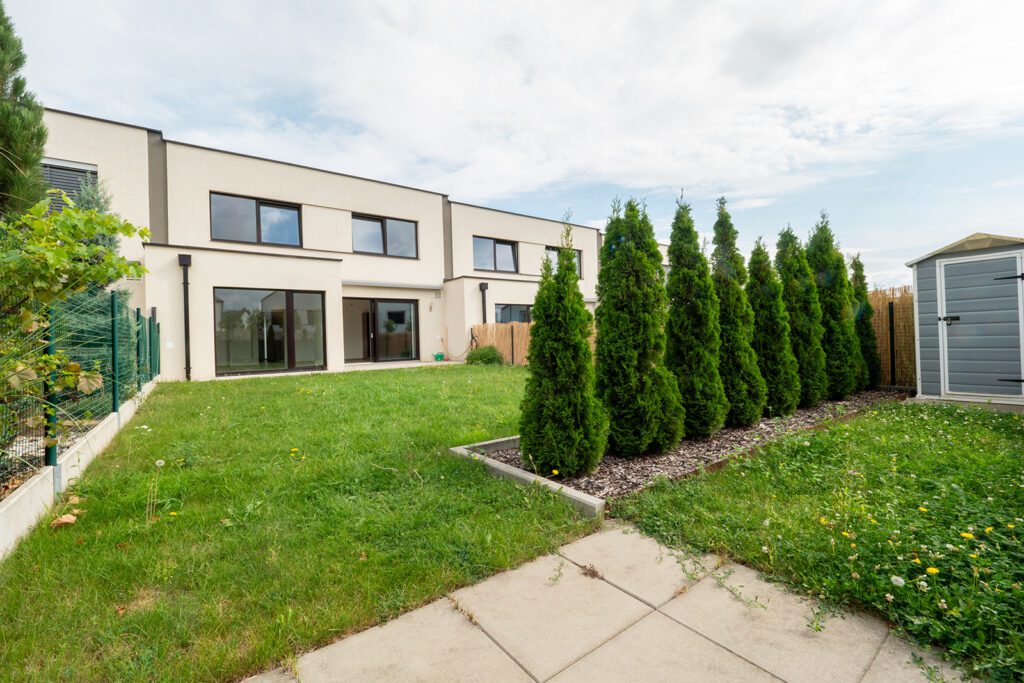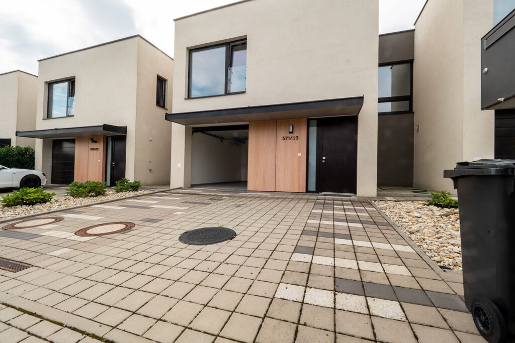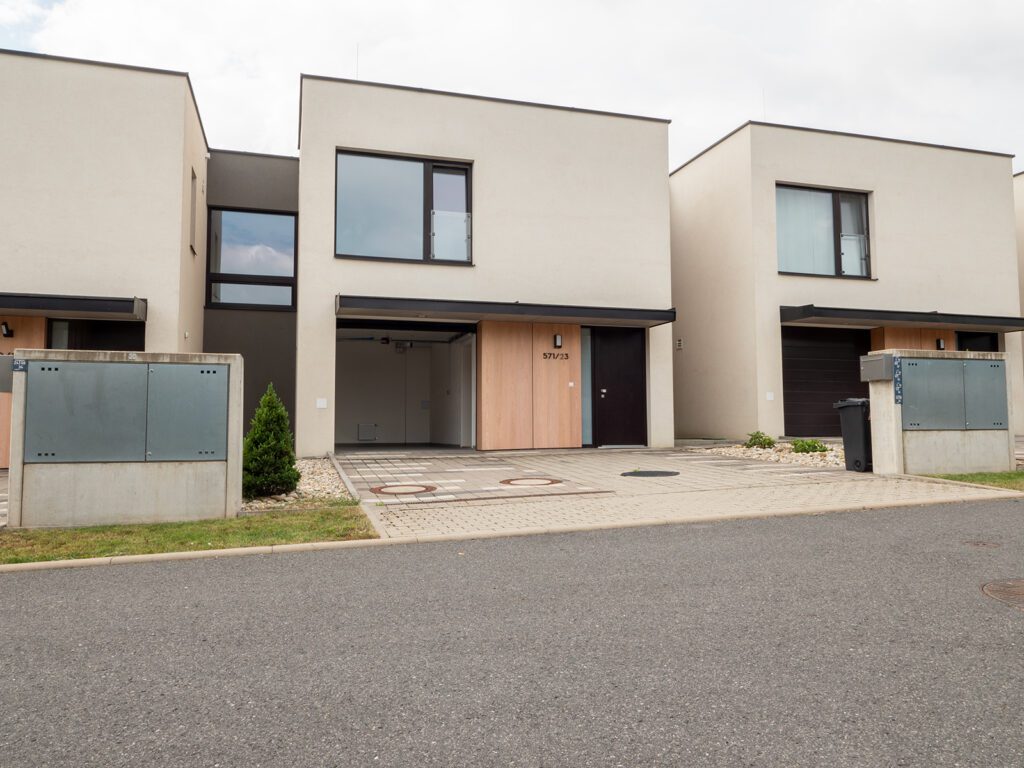 Pronájem krásného rodinného domu se zahradou a garáží v nedávno postaveném rezidenčním projektu Rodinné domy Březiněves s dispozicí 4+kk s podlahovou plochou 146 m² se zahradou 133 m² a terasou 14,82 m² (pozemek celkem: 286 m²) v pražské městské části Březiněves, Praha 8. Tento dům byl zkolaudován v 1Q/2019 a je vybaven kvalitním nadstandardem (plastová okna s izolačním trojsklem, bezpečností plastové vchodové dveře, garážová vrata na dálkové ovládání, plynový kombinovaný kotel, zásobník TUV, podlahové vytápění v 1.NP a desková topná tělesa v 2.NP, vinylová podlaha v obytných místnostech, keramická dlažba a obklady v komoře, technické místnosti). Dům je vybaven troubou, sklokeramickou varnou deskou, myčkou, digestoří a mikrovlnnou troubou. V domě není instalována pračka a lednice. Vozidlo zaparkujete v garáži a další 2 vozidla mohou parkovat přímo před domem. V této městské části se nachází také dobrá občanská a obchodní vybavenost. Supermarket, mateřská a základní škola a rybník s koupalištěm. Dům stojí nedaleko centrálního parku s dětským hřištěm, v klidné lokalitě plné zeleně, vzdálené 13 km od centra Prahy, v oblasti s plnou občanskou vybaveností v blízkém okolí. Dům se nabízí k dlouhodobému pronájmu.