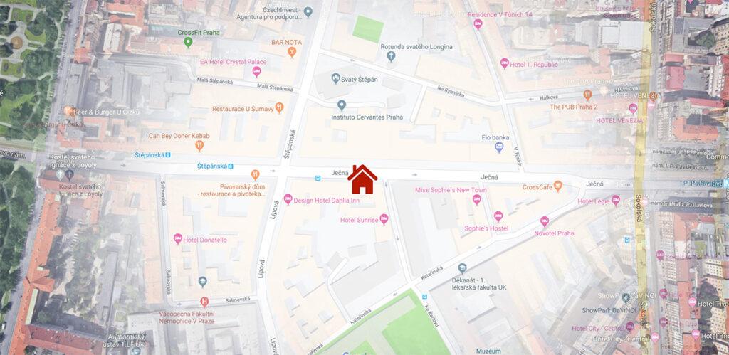 Podnájem bytu s dispozicí 2+1 o celkové výměře 67 m², který je ve 2. NP cihlového domu v pražské městské části Praha 2 – Nové město. Byt sestává z prostorné chodby (8,2 m²), koupelny s vanou a WC (6,0 m²), kuchyně (14,2 m²), která je vybavena lednicí, plynovým sporákem s troubou, myčkou a mikrovlnnou troubou. Byt je vybaven i automatickou pračkou, která je v koupelně bytu. Dále jsou v bytě dva neprůchozí pokoje (18,1 m² a 17,9 m²), kde v jednom z nich je i patro na spaní (4,0 m²). V místě je veškerá občanská vybavenost a skvělá dopravní dostupnost – mnoho tramvajových a autobusových linek a stanice metra (C) – I.P. Pavlova či stanice linky (B) – Karlovo náměstí. Pěší dostupnost na Václavské nám. cca 8 minut chůze.