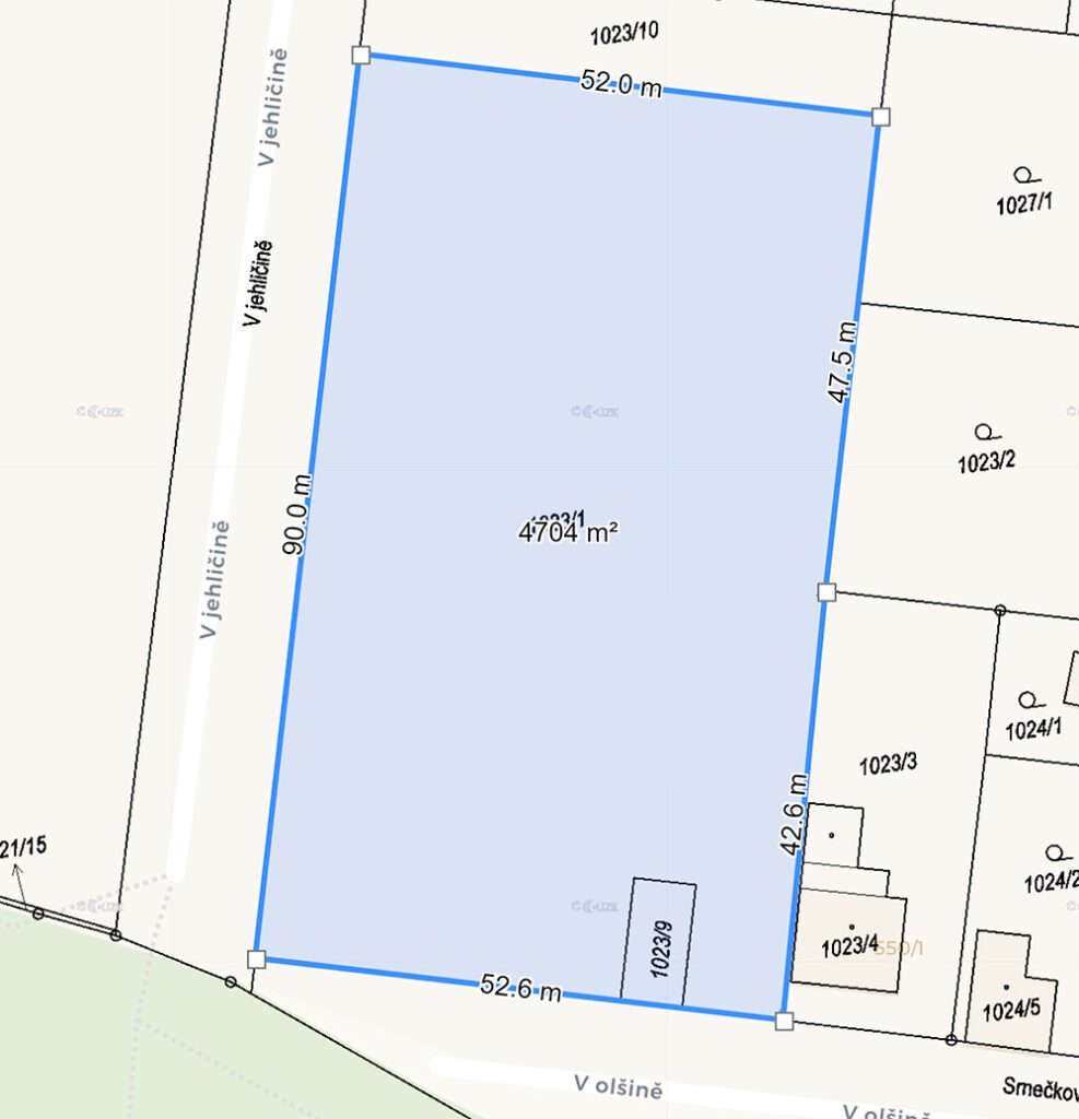 Prodej stavebního pozemku (parc.č. 1023/1 a parc.č. 1023/9) o celkové velikosti 4704 m², který je v územním plánu veden jako plocha (OB) – čistě obytná, s hlavním využitím jako plocha pro bydlení. Pozemek lze rozdělit na 4 – 5 stavebních pozemků s minimálními náklady na síťě