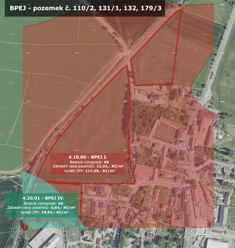 Grafická část ÚP – pozemek je umístěn převážně v zastavitelném území obce v ploše Smíšená obytná území, ze západní části je vymezena v ÚP veřejná a parková zeleň, v ploše je potřebné vyřešit návrh komunikací