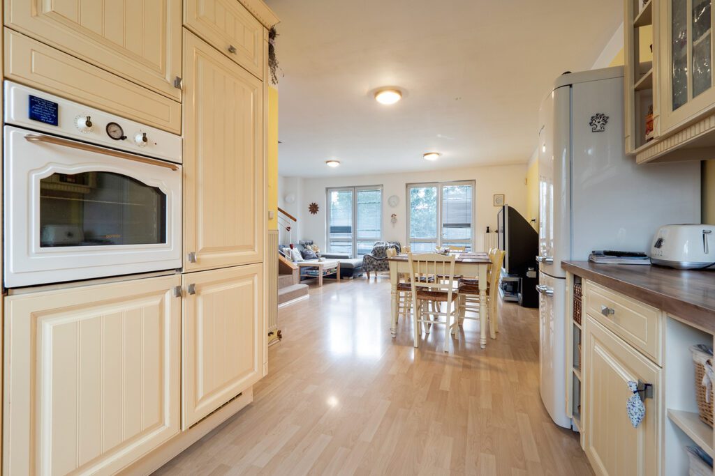 Prodej patrového RD v obci Bašť, ul. Měšická, Praha – východ z roku 2005 s dispozicí 5+kk s podlahovou plochou 153 m2 (zastavěná plocha 92 m2) s předzahrádkou (66 m2) a zahradou (140 m2 – vč. zpevněné nezastřešené terasy 25 m2). V domě je vlastní garáž (17,5 m2).