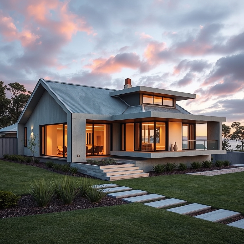 Dům, který jsme si představíme, je postaven z betonu a cypřišového dřeva, dvou materiálů, které jsou známé svou odolností a životností. Beton je široce používán v architektuře pro svou pevnost a odolnost proti povětrnostním podmínkám, zatímco cypřišové dřevo je oblíbené pro svou přírodní krásu a schopnost absorbovat vlhkost.